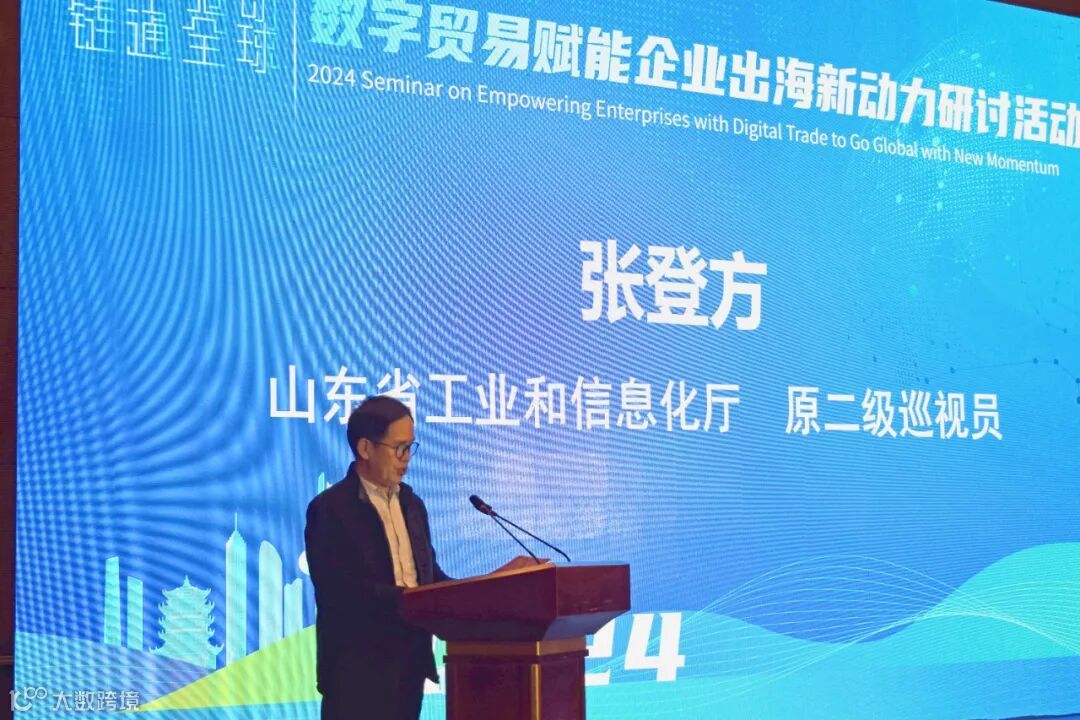 会上,山东省工业和信息化厅原二级巡视员张登方在致辞中指出,数字贸易正成为推动全球经济发展的重要力量,其快速增长和广泛应用对企业的市场拓展和国际竞争力具有重要意义。2023年,中国数字贸易实现了可数字化交付服务进出口规模2.72万亿元人民币,同比增长8.5%,跨境电商进出口额达2.37万亿元,同比增长15.3%,均创历史新高。这一系列亮眼的数字表明,数字贸易不仅跨越地理界限,让企业触达全球市场,还通过技术创新和个性化服务增强了企业的国际竞争力。