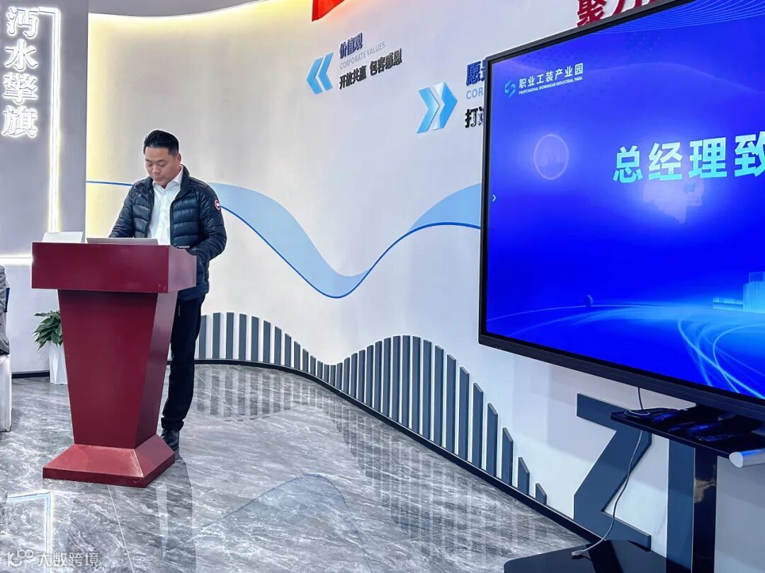 仙桃职业工装电商产业园总经理易坤表达了对首批客户诚挚的感谢,更清晰地重申了园区打造产业生态的决心和愿景。他强调,园区将致力于为企业提供全方位的支持与服务,助力企业降本增效、发展壮大,共同将仙桃职业工装电商产业园建设成为产业高地。