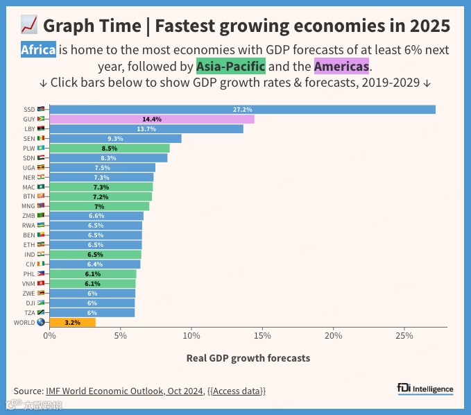 图:2025年全球增长最快的22个经济体,