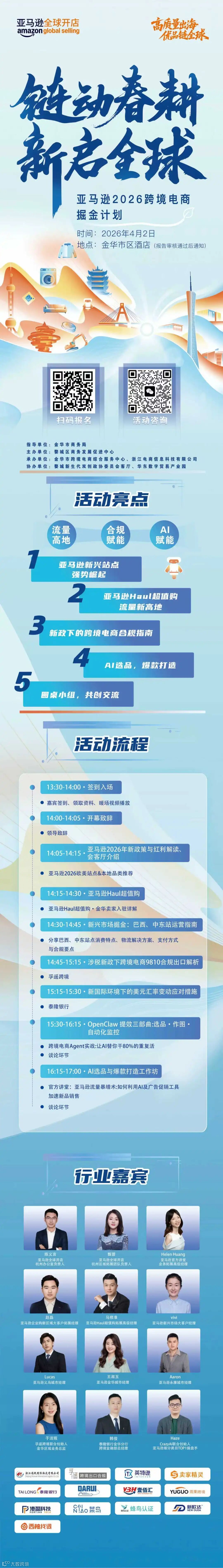“链动春耕 新启全球”亚马逊2026跨境电商掘金计划(金华站)活动即将启动