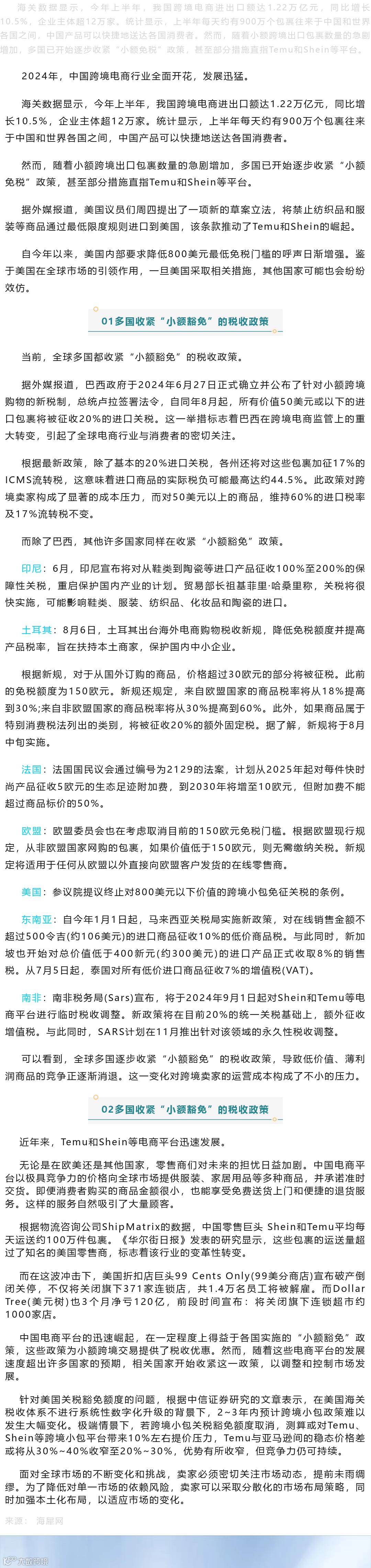 行业资讯 | 全球关税变动,“小包裹”时代宣告结束?