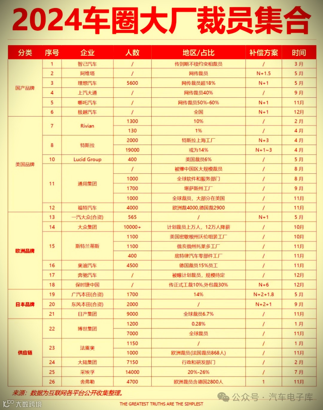 2024(1-12月)汽车圈大厂裁员情况