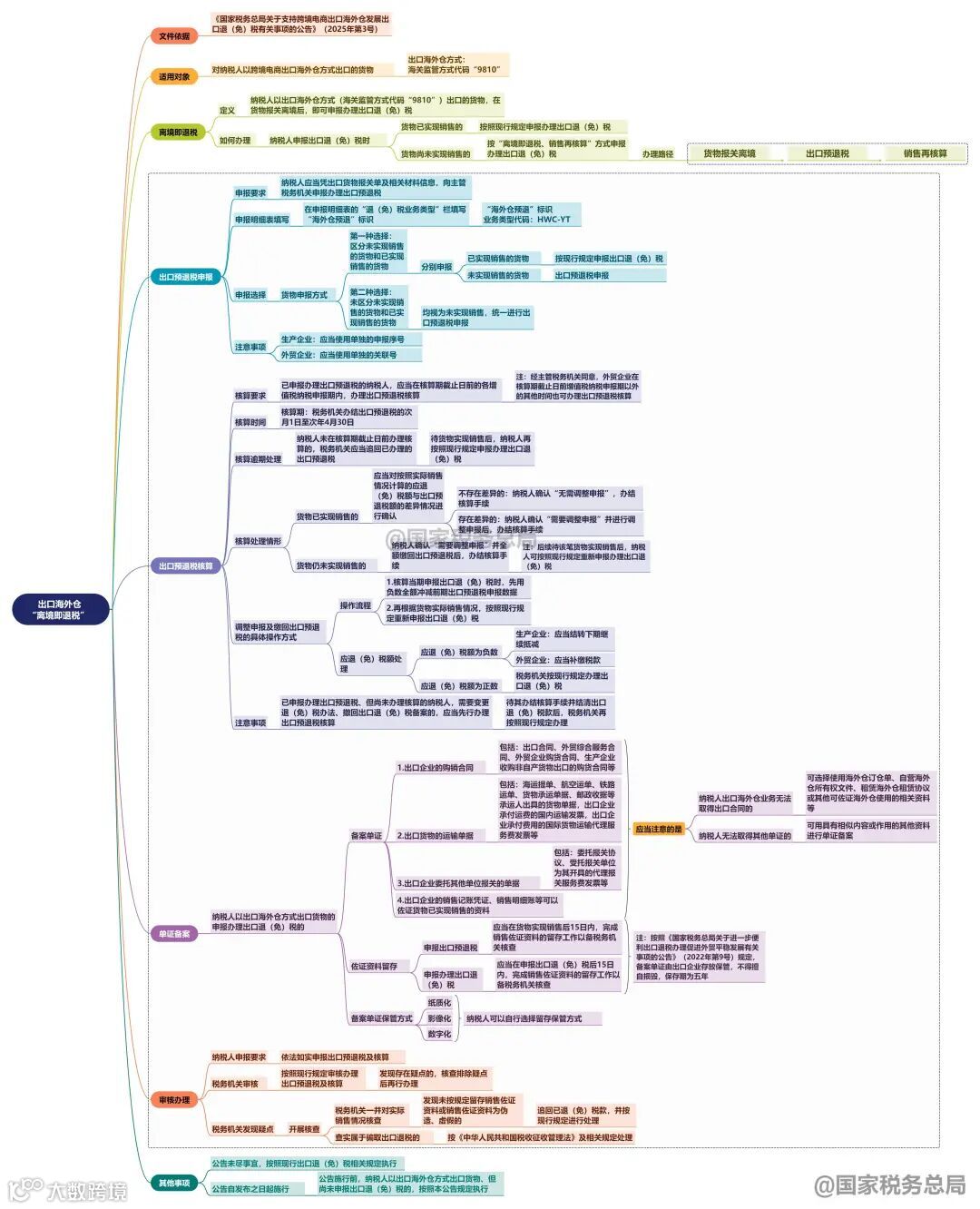 政策资讯 | 高清完整版来了!跨境电商出口海外仓“离境即退税”政策思维导图