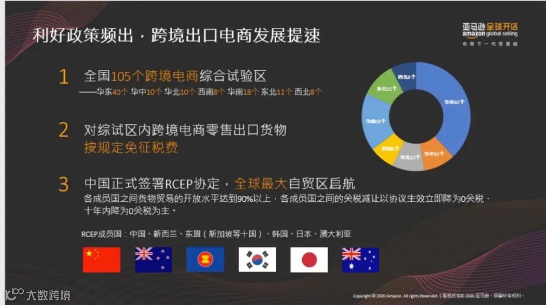 跨境电商综合试验区有各种利好的政策,对跨境电商企业进行扶持。中国正式签署RCEP的协定,成为全球最大的自贸区,主流成员国里面互惠互利为自贸的发展进行推动作用。从政策的方面来讲,让中国的企业搭上最快的和最强的这艘船去出海提供了最好的背景和支持。