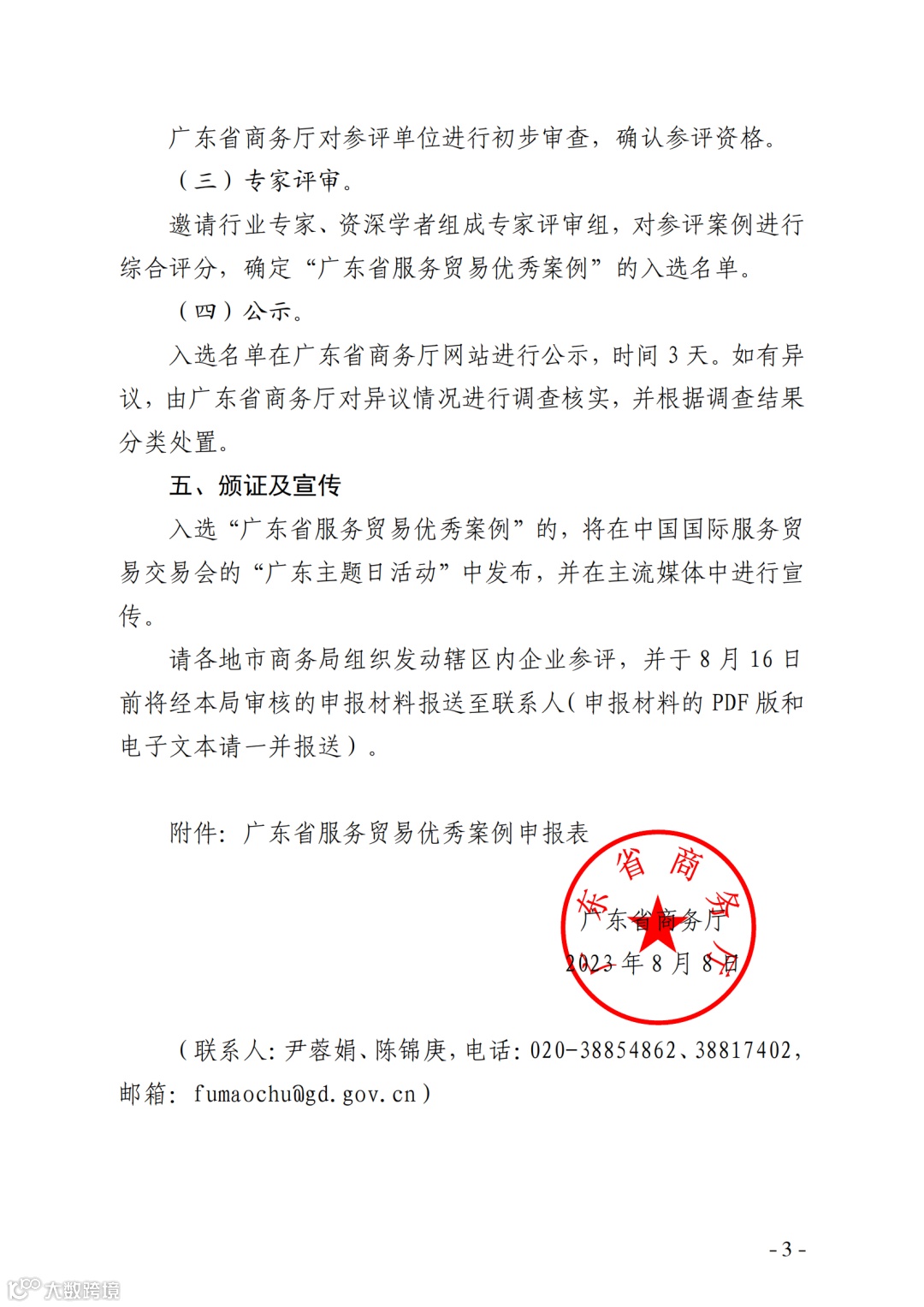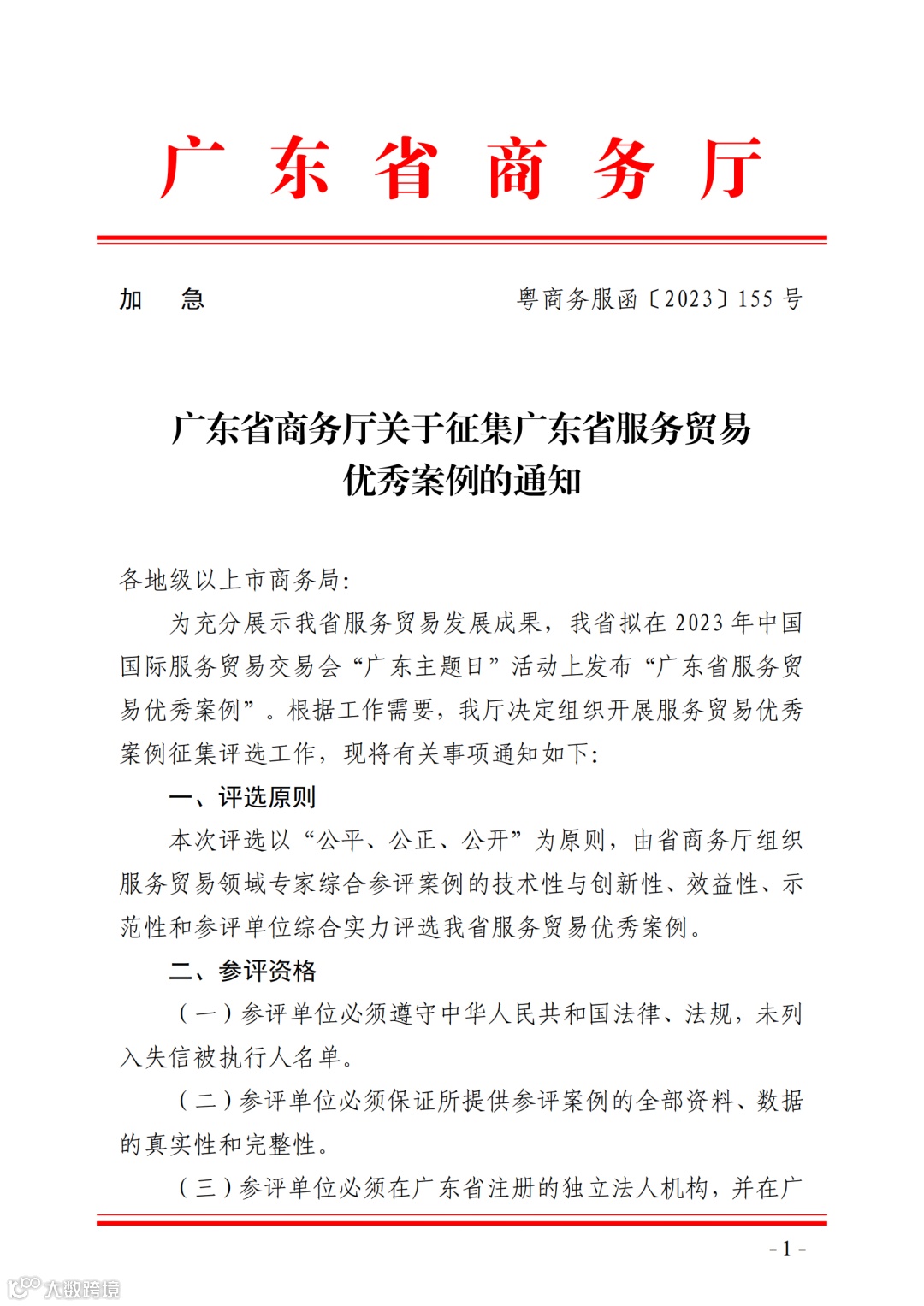 转发:广东省商务厅关于征集广东省服务贸易优秀案例的通知