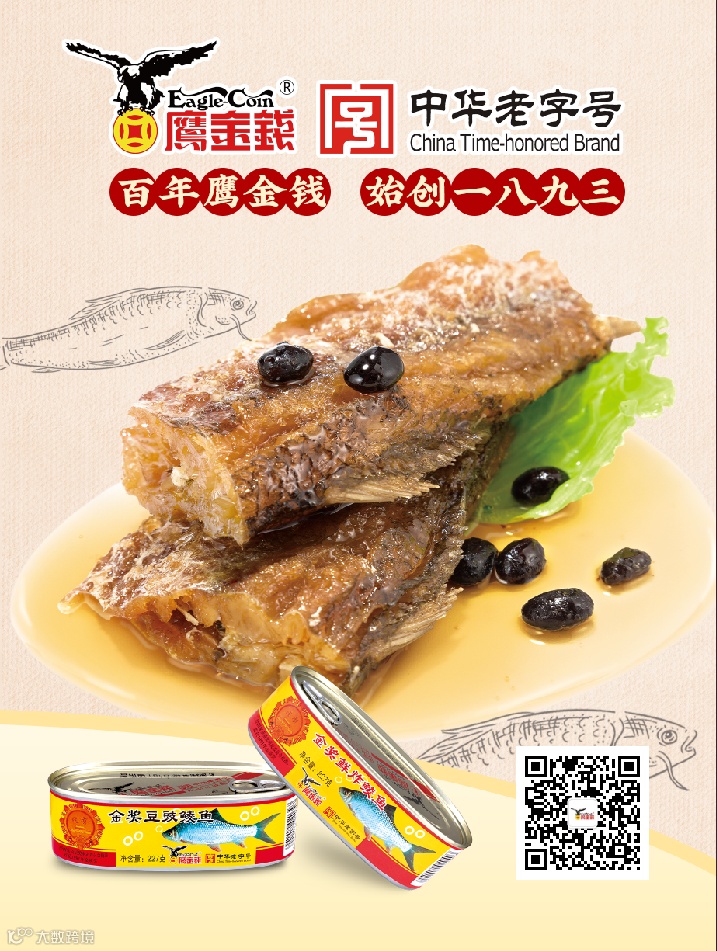 广州鹰金钱食品集团有限公司,是广州国有食品生产经营企业,前身为广东罐头厂,始建于1956年。目前,公司主要产品有罐头食品、休闲食品、酒类、饮料、预制菜等。经过多年的发展和经营,“鹰金钱”品牌已经成为中国罐头行业的著名品牌,2010年“鹰金钱”品牌荣获“中华老字号”称号。2012年“鹰金钱”牌产品荣获“广东十大手信”称号。