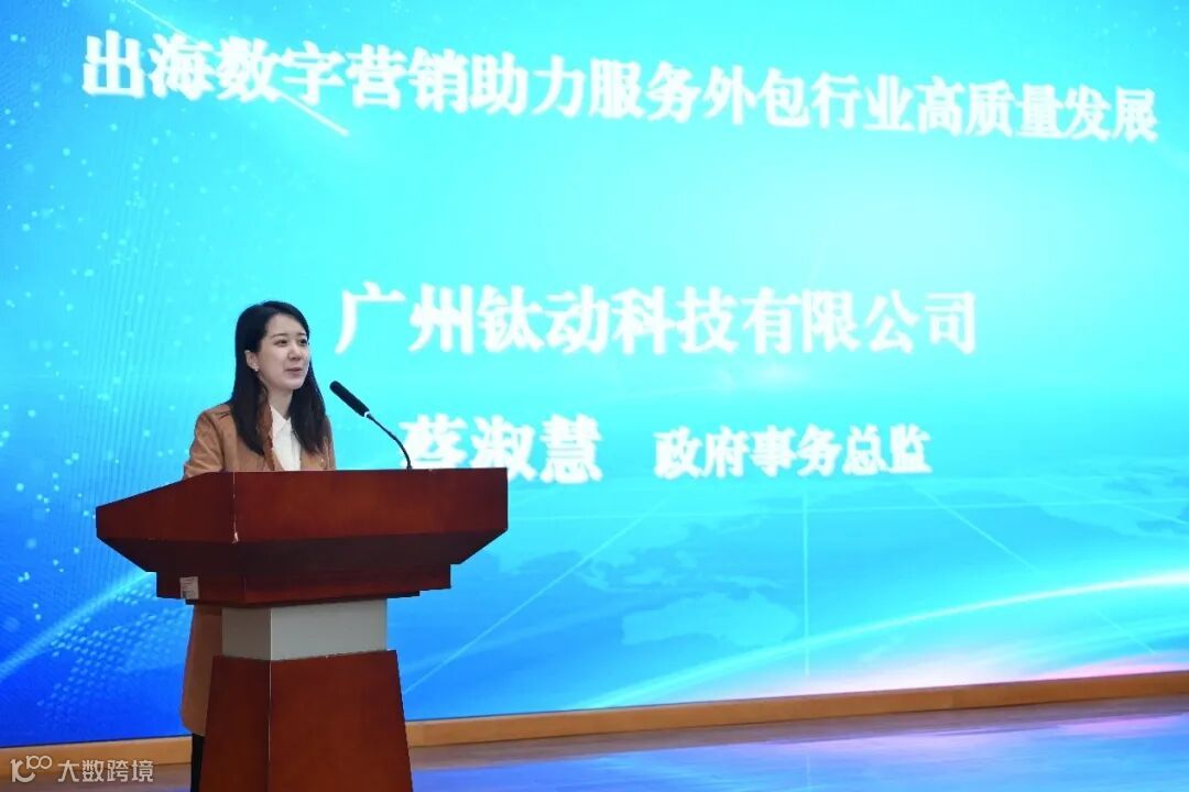 广州钛动科技有限公司政府事务总监蔡淑慧作题为“出海数字营销助力服务外包行业高质量发展”的分享。钛动科技在出海数字营销服务领域深耕五年,已成长为大中华区增速最快的出海服务商。未来,公司将贯彻落实全省高质量发展大会精神,坚守初心,实干为先,通过商业数字化和移动互联网能力让全球消费者享受到中国优秀的产品和内容。