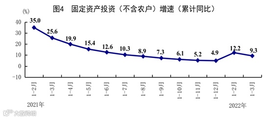 一季度,全国固定资产投资(不含农户)104872亿元,同比增长9.3%。分领域看,基础设施投资同比增长8.5%,制造业投资增长15.6%,房地产开发投资增长0.7%。全国商品房销售面积31046万平方米,下降13.8%;商品房销售额29655亿元,下降22.7%。分产业看,第一产业投资增长6.8%,第二产业投资增长16.1%,第三产业投资增长6.4%。民间投资59622亿元,增长8.4%。高技术产业投资增长27.0%,其中高技术制造业和高技术服务业投资分别增长32.7%、14.5%。高技术制造业中,电子及通信设备制造业、医疗仪器设备及仪器仪表制造业投资分别增长37.5%、35.4%;高技术服务业中,信息服务业、科技成果转化服务业投资分别增长21.3%、19.0%。社会领域投资增长16.2%,其中卫生、教育投资分别增长23.8%、17.2%。3月份,固定资产投资(不含农户)环比增长0.61%。