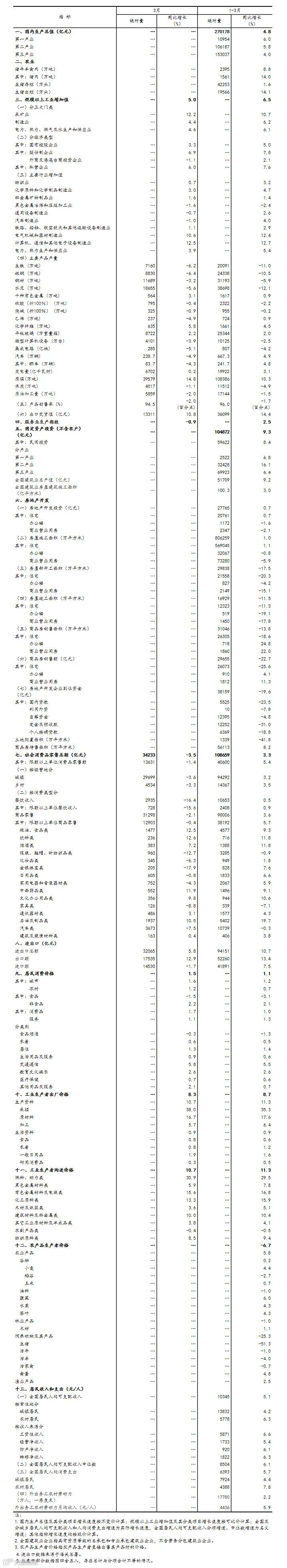 (1)国内生产总值及其分类项目增长速度按不变价计算,规模以上工业增加值及其分类项目增长速度按可比价计算,均为实际增长速度;其他指标除特殊说明外,按现价计算,为名义增长速度。