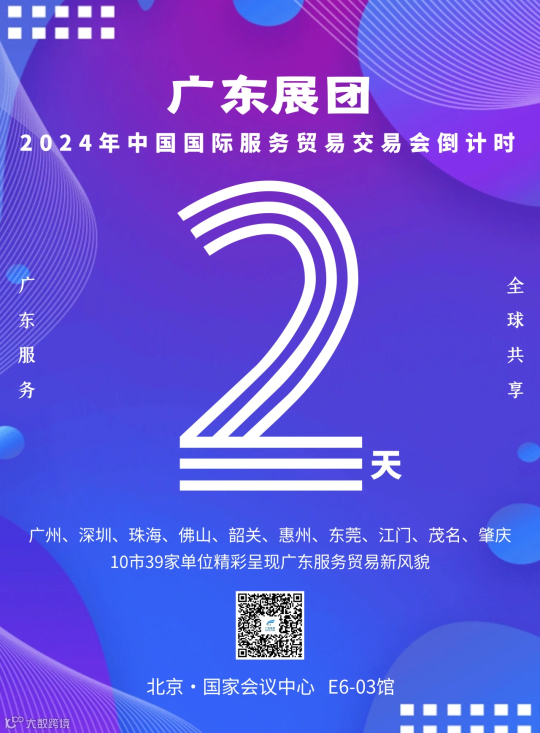 9月12-16日,2024年中国国际服务贸易交易会(下称“服贸会”)将在北京国家会议中心举办。届时,广东省商务厅组织的广东展团将精彩亮相。