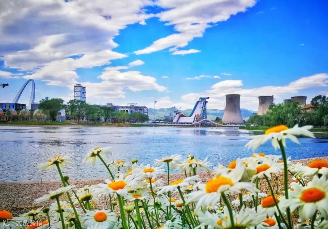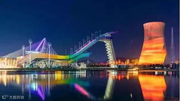 滑雪大跳台位于首钢园区北区,是北京2022年冬奥会的重要遗产之一,也是游览首钢园区必逛的“网红打卡地”之一。大跳台由赛道、裁判塔和看台区域三部分组成,其设计融入了敦煌壁画中“飞天”的元素。这里北望石景山,东临群明湖,西临永定河,美景尽收眼底。