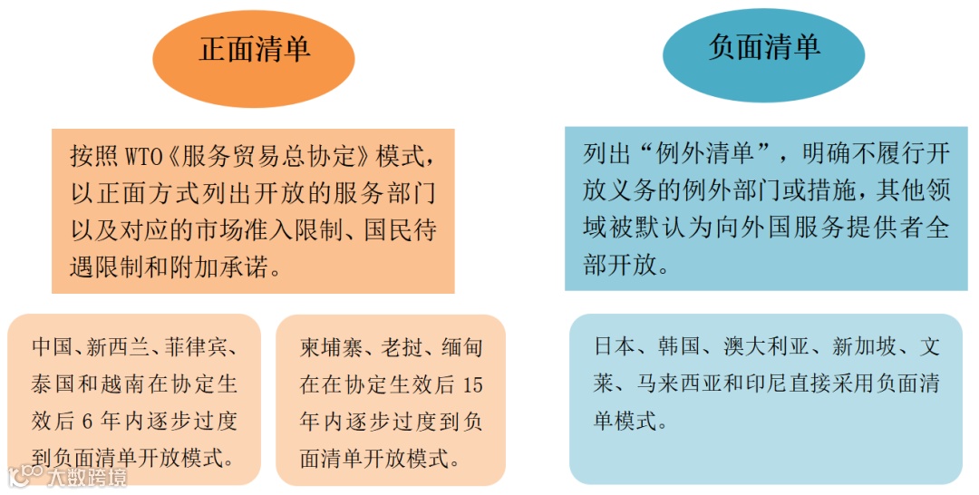 服务贸易开放模式分为正面清单和负面清单。RCEP15方均做出了高于WTO以及各自原有“10+1”自贸协定水平的开放承诺。除老挝、柬埔寨、缅甸之外,其他东盟成员在RCEP中承诺的服务部门数量均增加到100个以上。
