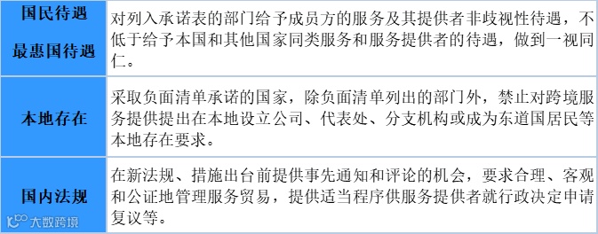服务贸易的核心义务包括国民待遇、最惠国待遇、市场准入和本地存在。