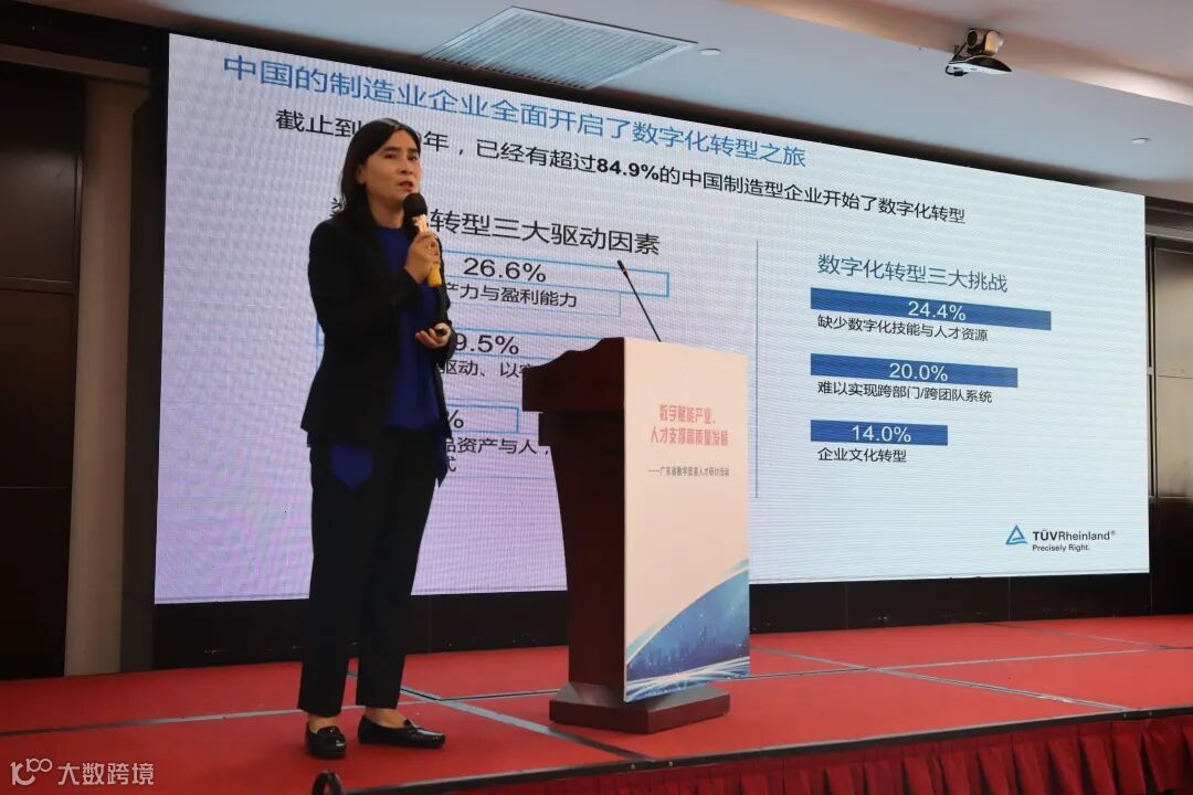 德国莱茵学院大中华区副总经理程亘卉在会上发表以“工业企业数字化转型最佳实践及数字化人才团队培养”为主题的演讲。她认为,工业4.0如果没有人才4.0,产业发展将停滞不前,2021年企业数字化转型中的首要挑战是内部缺乏数字化领导者和人才。