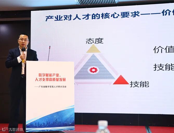 东软教育科技集团华南区总经理杨义文在会上发表“数字贸易呼唤数字人才”主题演讲。他认为,数字经济发展水平已经成为衡量地区经济发展的重要标志,数字贸易是未来贸易发展的新方向,而数字人才是数字贸易产业发展的核心要素。