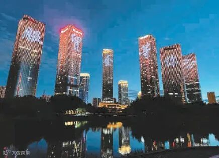 晚上,一场灯光秀点亮夜京城,迎接服贸会的到来。