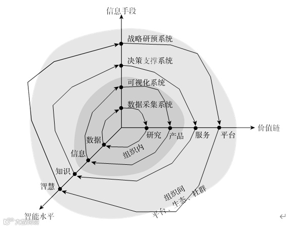 当前的智慧企业能够做到数据感知和数据互联,但还无法完全做到数据集成,而继续升级让数据产生知识以从中洞察智慧,则是对智慧企业更高层面的要求。图1是笔者研究团队提出的智慧企业成熟度模型。智慧企业是企业发展的高级阶段,是一项复杂的系统工程;智慧企业运行平台是承载企业全部经营活动,全要素实现数字化、网络化、智能化的物理载体,更承载着组织成员不断思考战略、商业模式、领导能力、组织结构及价值创造的方法,是提高企业竞争力的新方向,也是下一个万亿级产业发展方向,对中国经济发展具有重大的潜在影响。