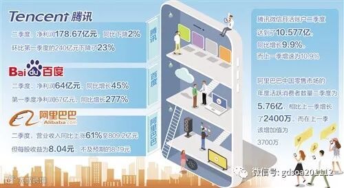 “超级入口”的用户数增速更说明问题。在腾讯新一季财报中,微信月活账户达到了10.577亿,同比增长9.9%,而上一季的增速为10.9%;在阿里巴巴方面,新一季中国零售市场的年度活跃消费者数量为5.76亿,相比上一季增长了2400万,而在上一季财报中,该增加值为3700万。