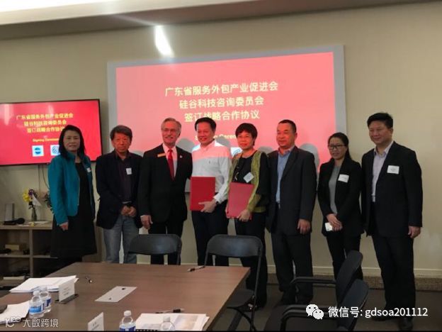 会议还促成了双方不同行业力量的深度合作。广东省服务外包产业促进会与美国硅谷科技咨询委员会成功签订战略合作协议。黄燕玲副会长代表我会进行了签约仪式。双方签约代表表示,将进一步加深合作交流,共同发挥民间行业组织的作用,为双方企业提供项目对接服务,促进中美科技交流。