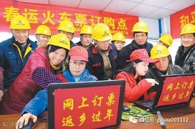 2018年1月3日,在安徽省合肥市瑶海区和平路街道辖区轨道交通四号线建设工地上,社区青年志愿者帮助地铁建设者从网上购买返乡火车票。