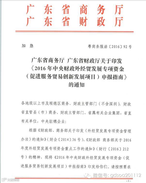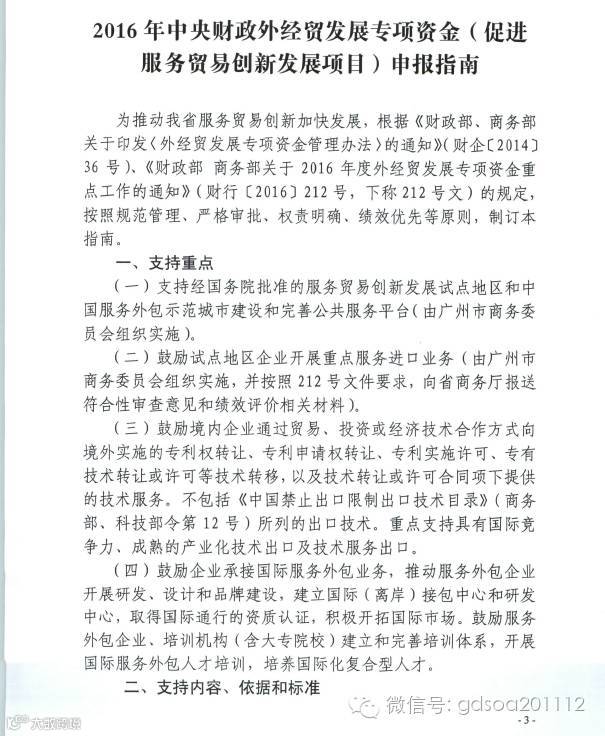 导读:广东省商务厅 广东省财政厅关于印发《2016年中央财政外经贸发展专项资金(促进服务贸易创新发展项目)申报指南