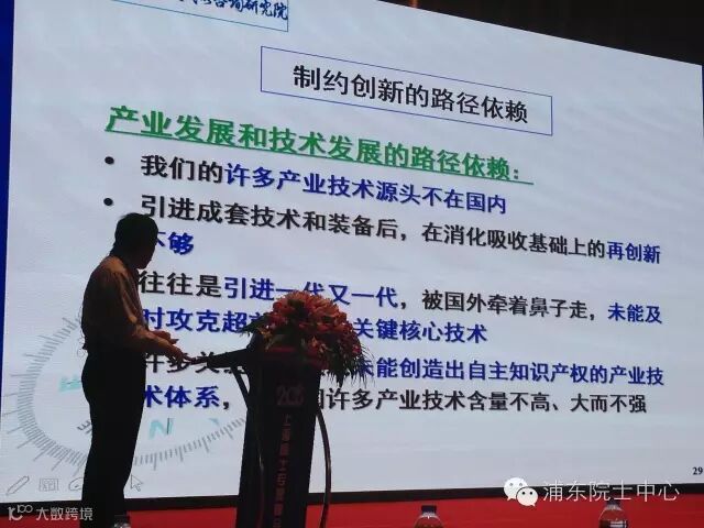 另一个依赖是产业发展和技术发展的路径依赖。我们的产业有多少源头技术在国内?这就造成一个问题,我们不断地引进很好的技术和装备,但是引进之后,在消化吸收基础上的再创新不够,只能跟着国外的技术,引进一代又一代,缺少超前一步的关键核心技术。许多关键产业领域未能创造出自主知识产权的产业技术体系,使我国许多产业技术含量不高、大而不强。