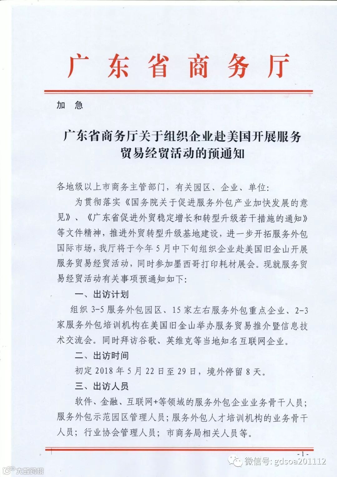 转发 广东省商务厅关于组织企业赴美国开展服务贸易经贸活动的预通知