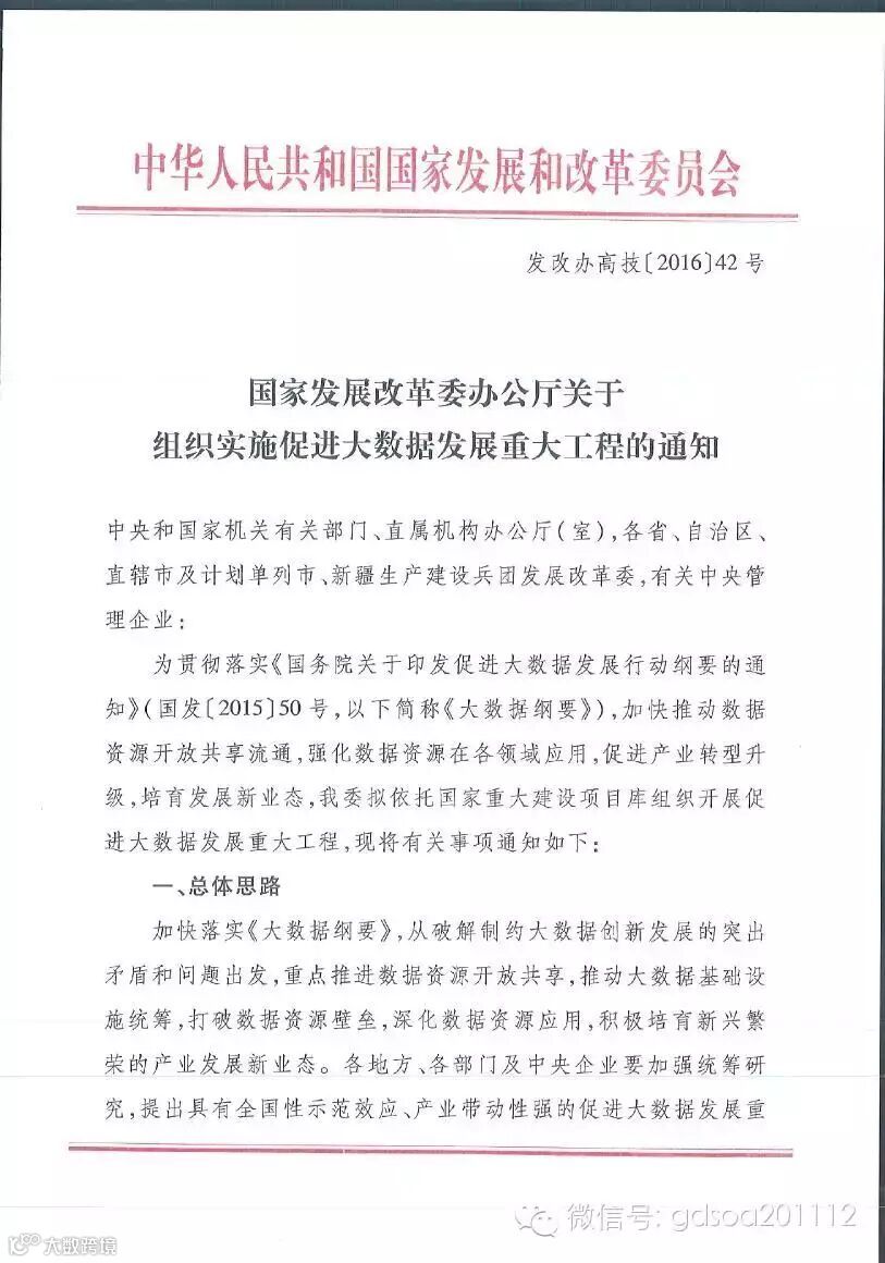 导读:国家发展改革委办公厅关于组织实施促进大数据发展重大工程的通知