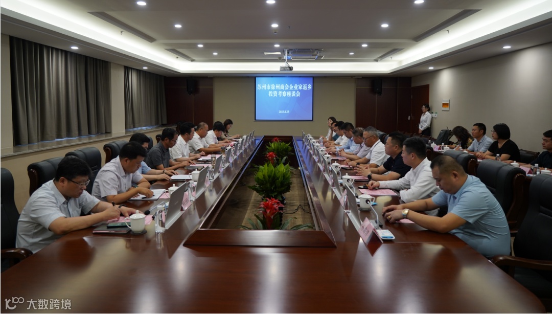 8月25日上午,苏州市徐州商会一行20余名企业家,在名誉会长黄苏宏、会长姚骅的带领下,来到淮海国际陆港数字贸易产业园开展专题调研。市工商联党组成员、副主席汤辉,徐州淮海国际港务区党工委委员、管委会副主任赵银平,商务口岸部部长刘若晨、副部长吴德志陪同。