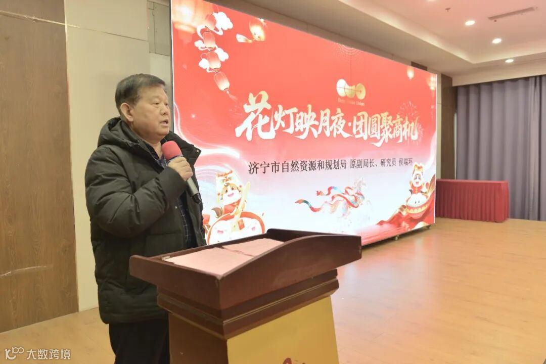 济宁市自然资源和规划局原副局长侯端环先生上台致辞,借元宵佳节的美好寓意,向全体参会人员送上诚挚祝福,回顾2025年济宁数字贸易的丰硕成果,展望2026年丙午马年的发展新征程: