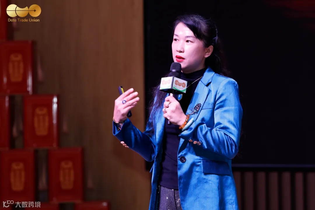 安护科技有限公司市场部总监杨晓君女士进行了助农锦盒推介主题演讲,展示了如何通过数字贸易平台推动农业发展。