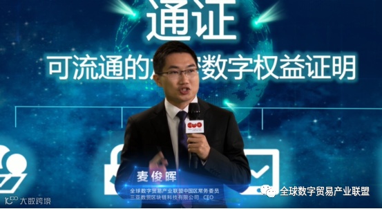 全球数字贸易产业联盟中国区第四届常务委员、数贸(三亚)区块链科技有限公司CEO麦俊晖先生进行了《商品通证化》的主题演讲,让使用者可以清晰的看到商品在交易贸易过程中的每一节点,甚至可以通过联盟链看到未来商品交易的节点。商品通证化可以为商品的交易创造更大的自由度,从而提高流程效率并创造额外的价值来源。