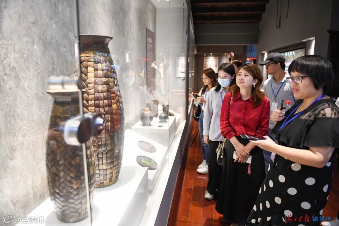 游客在骑楼老街海口非遗文化展示馆内参观。