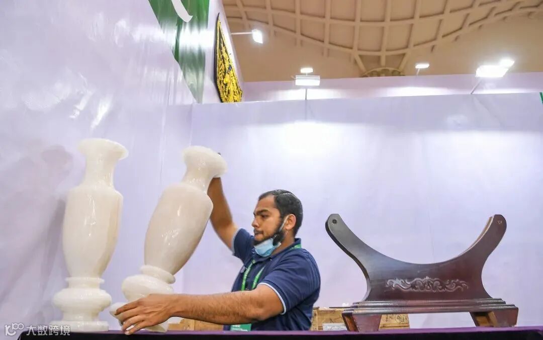 2020年中国(海南)国际热带农产品冬季交易会,“一带一路”国际馆巴基斯坦展区布置精美装饰品。石中华 摄