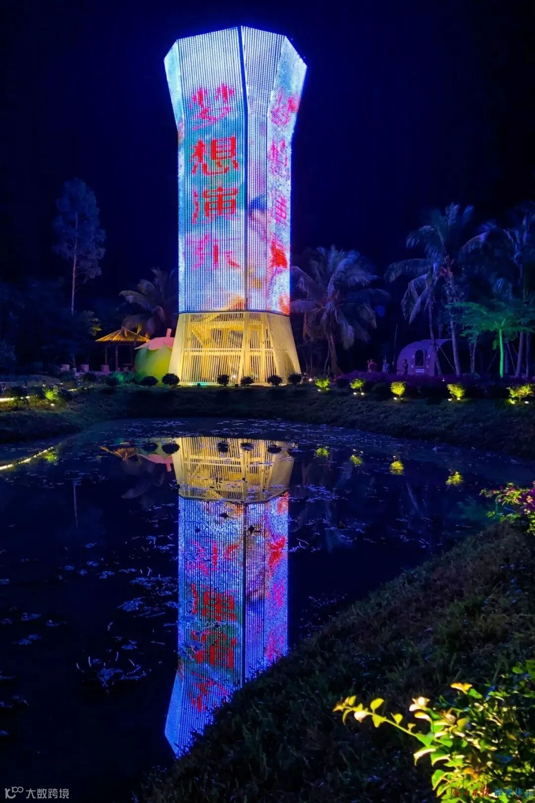 芳园村中亮起灯光的观光塔。记者陈长宇 通讯员李思仪 摄