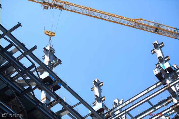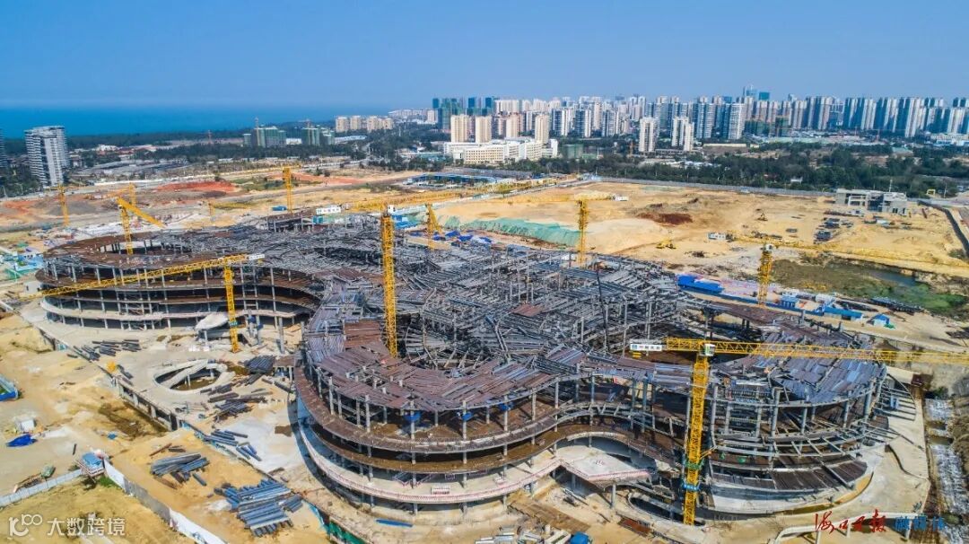 美丽西海岸,海阔春潮涌。在海口国际免税城项目工地,塔吊林立,机械轰鸣,工人忙碌,现场一派火热景象。免税商业中心钢结构已完成封顶,正在加紧开展幕墙、屋面、装饰装修等施工,建成后将成为亚洲最大的免税商城,海南建设国际旅游消费中心的新名片。