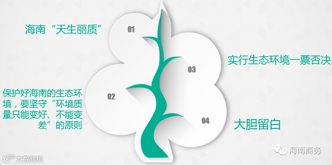 海南拥有得天独厚的自然生态环境,具备“天生丽质”的资源优势。中央又陆续赋予海南一系列含金量十足、其他省区都不曾得到过的优惠政策,属于“独生子女”、“独此一家”、不可复制、难以推广的政策。这样的目的,是希望在经济发展方面助海南一臂之力,使得海南能在生态环境保护上下更大的力气、花更多的功夫。可以讲,保护好海南的生态环境,既是中央赋予海南的重要政治任务,也是全国人民和海南人民的共同期盼和要求。如果把生态这块“金字招牌”砸掉了,就无法向中央交代,无法向全国全省人民交代,无法向子孙后代交代。招商引资工作中,要坚守“环境质量只能变好、不能变差”的原则,不管引进什么样的重点项目都要“把好生态环保关”,实行生态环境一票否决。从牙缝里挤出来的宝贵土地资源,不能被低效甚至无效占用。项目必须符合“多规合一”要求,对禁止开发的生态功能区,要大胆留白、严格保护,才能把海南的蓝图描绘得更好,青山绿水、碧海蓝天要留给子孙后代。这一点招商同志要十分清醒、十分坚定,不能有丝毫的模糊、动摇。