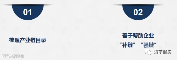 首先要把产业链搞清楚,上下游企业找出来,排出产业链龙头企业名单,作为主攻方向,开展有针对性的上下游企业招商。因为产业链招商的核心,是那些附加值高、带动作用强、处于产业链高端的龙头企业,这样的企业落在哪,影响因素很多,投资环境、政策环境当然重要,但产业链配套尤为重要。
