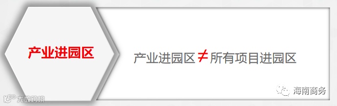 现在产业项目原则上是要进园区的,不进园区是特例。但是产业进园区,指的是需要用地用厂房的“产业”项目,不是所有的项目。这几年海南省委省政府根据中央的要求和海南的省情特点,确定了重点发展的十二个重点产业,这些就是海南产业发展的“大纲”,产业项目,特别是现代服务业中的很多类别,比如贸易公司、度假酒店、商业综合体、文旅项目、律师事务所、会计师事务所等,就不必进园区,也不适合进园区。因此,一方面要抓好产业项目进园区,另一方面也要做好园区外项目的谋划和招商,两种类型项目一起招。