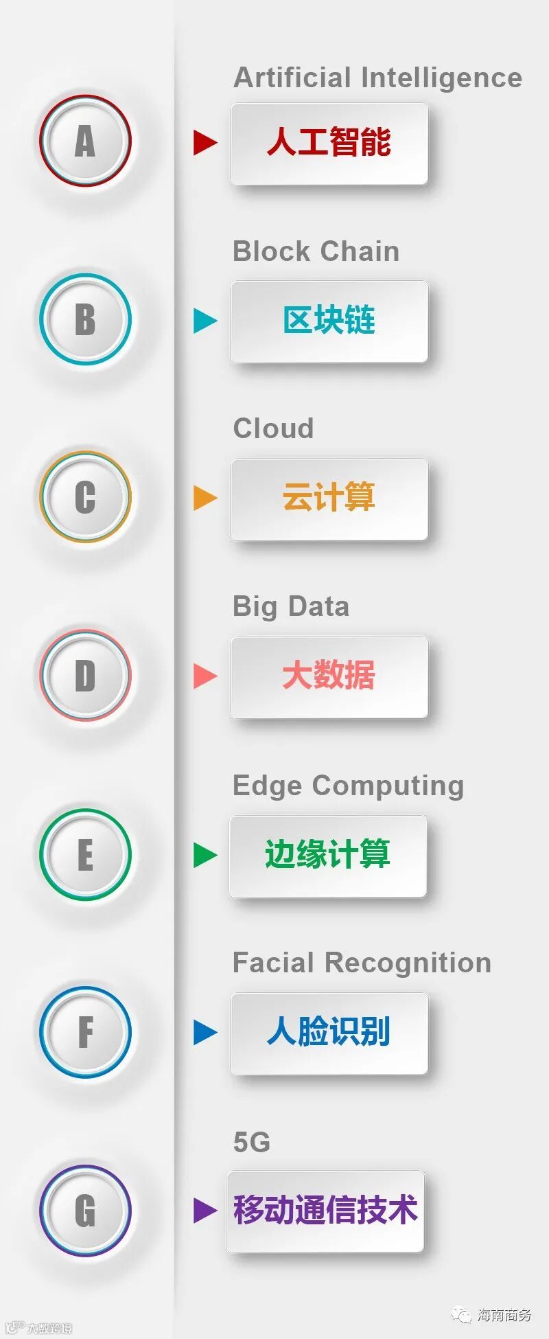 曾有领导用“ABCDEFG”这几个英文字母总结了当今世界数字化领域发展中出现的新技术: