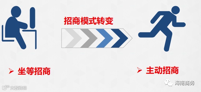 改变“老套路”,就要更新招商模式和服务理念、服务态度。过去海南的经济发展主要依赖房地产,招商模式也是房地产模式,由于可选择的企业多,市县领导和招商部门“朝南坐”,等着企业找上门,“坐等选商”,不用“四处招商”,不必对项目做策划包装,也不必主动出击。但现在经济发展转型要求摆脱对房地产的依赖,要招的是现代服务业、高新技术企业,是我们求人家,而不是人家求我们了。如果对企业态度不好,不追着企业跑,人家就走了。所以经济发展的转型首先要从服务理念、服务态度开始转变,要放低身价、主动上门、主动求人、主动招商。