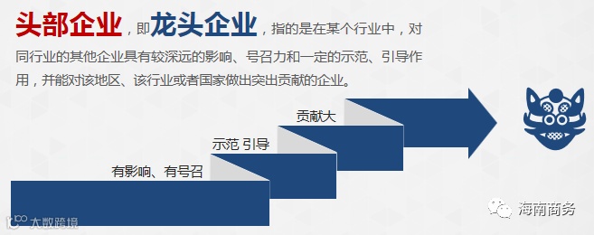 头部企业,即龙头企业,指的是在某个行业中,对同行业的其他企业具有较深远的影响、号召力和一定的示范、引导作用,并能对该地区、该行业或者国家做出突出贡献的企业。