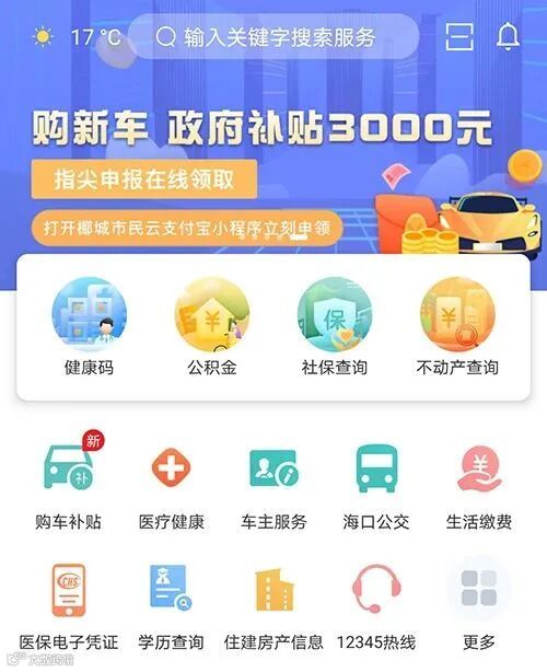 椰城市民云APP首页截图