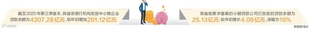今年以来,在扩大对中小微企业的融资渠道方面,海南省督促银行机构、地方金融组织及投资机构积极服务海南省优质中小微企业。截至2020年第三季度末,海南省各银行机构发放中小微企业贷款余额为4307.28亿元,较年初增加201.12亿元。此外,海南省按要求备案的小额贷款公司已发放的贷款余额为25.13亿元,较年初增长4.09亿元,涨幅为19%。