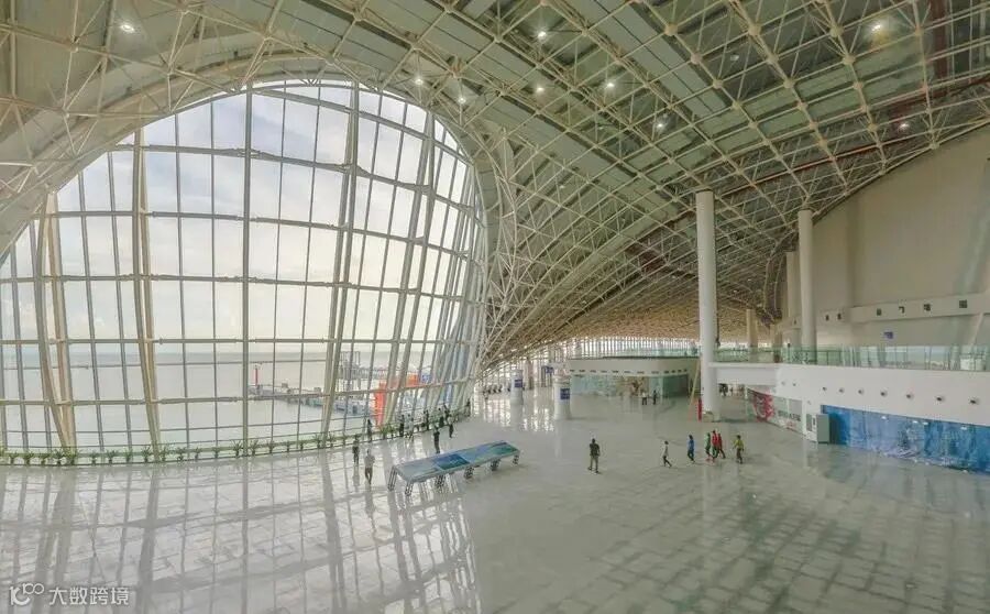在候船区,设计独特的“得月门”令人眼前一亮,当天,不少旅客拿着船票在这里拍照“打卡”。开港后,徐闻港综合交通枢纽大楼的“得月门”将成为中国大陆最南端的“海角地标”,途经琼州海峡旅船的“明月”。徐闻港综合交通枢纽大楼建筑风格设计与海洋文化、侨乡文化有机结合,传承广东居民的传统“嵌瓷”建造技艺。以纯粹、独特且具有东方古建筑传统设计元素的“得月门”,呈现出“海上生明月,天涯共此时”的意境,