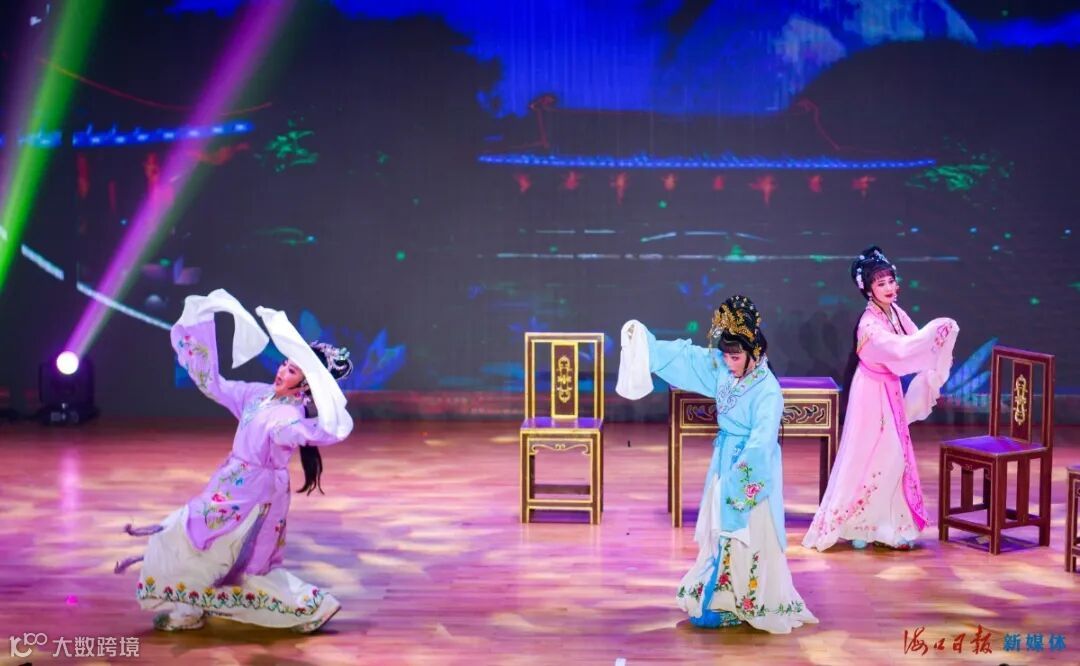 美兰区新时代文明实践中心举行的“魅力自贸港 琼韵醉海南”2020年第五届大致坡琼剧文化节开幕式上,琼剧演员在上演琼剧串烧。康登淋 摄