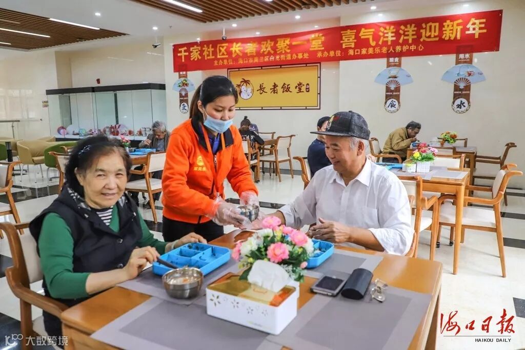 长者饭堂服务人员为候鸟老人端送热汤。 王程龙 摄