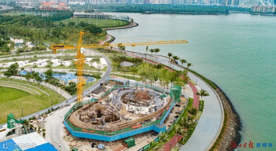 海口世纪公园的云洞图书馆项目施工现场,一片繁忙景象。目前,该项目工期总进度已完成约50%,预计明年1月底交付使用。 王程龙 摄