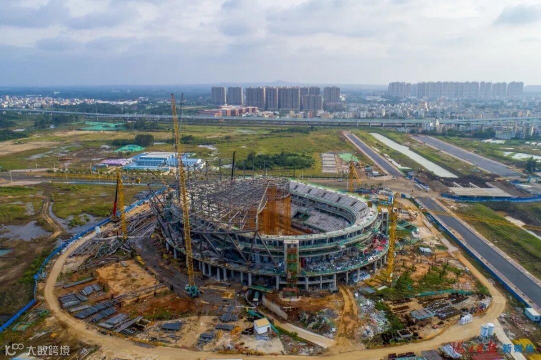 10月27日,海口五源河文体中心二期项目体育馆正进行室内初装饰、机电管线安装及钢屋盖桁架吊装施工。据悉,该项目总建筑面积77951 ㎡,体育馆观众座席数为18066个。 石中华 摄