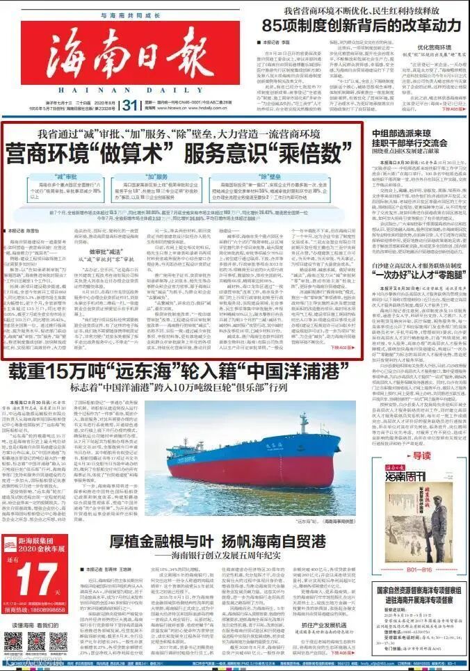 聚焦海南通过“减”审批、“加”服务、“除”壁垒大力营造法治化、国际化、便利化的一流营商环境,赢得了来琼投资企业大幅上涨。今年7月,全省新增市场主体超2.53万户同比增长36.66%。与此同时,今年上半年共有30个国家和地区在我省新设外资企业,以下是版面图和报道全文。